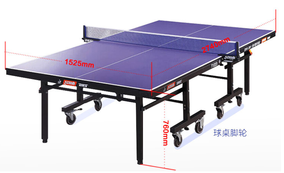 多屆世乒賽等大賽球臺國際乒聯批準;國際經典系列;臺面顏色:藍色;臺面材質:MDF;臺面尺寸:標準賽事尺寸;有無腳輪:有腳輪,腳輪可推移;物理性能:彈性230-260mm;彈性均勻度≦5mm;球臺穩定性