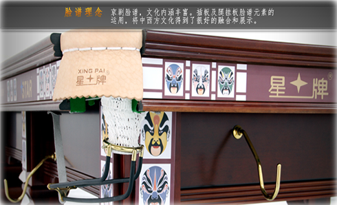 厚重的實(shí)木著色與印制LOGO的臉譜插板對(duì)比,