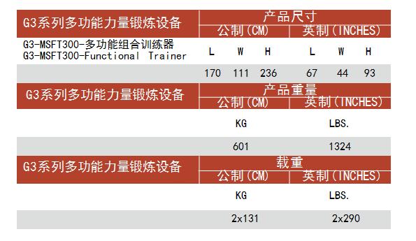 提供有131千克/290磅的配重